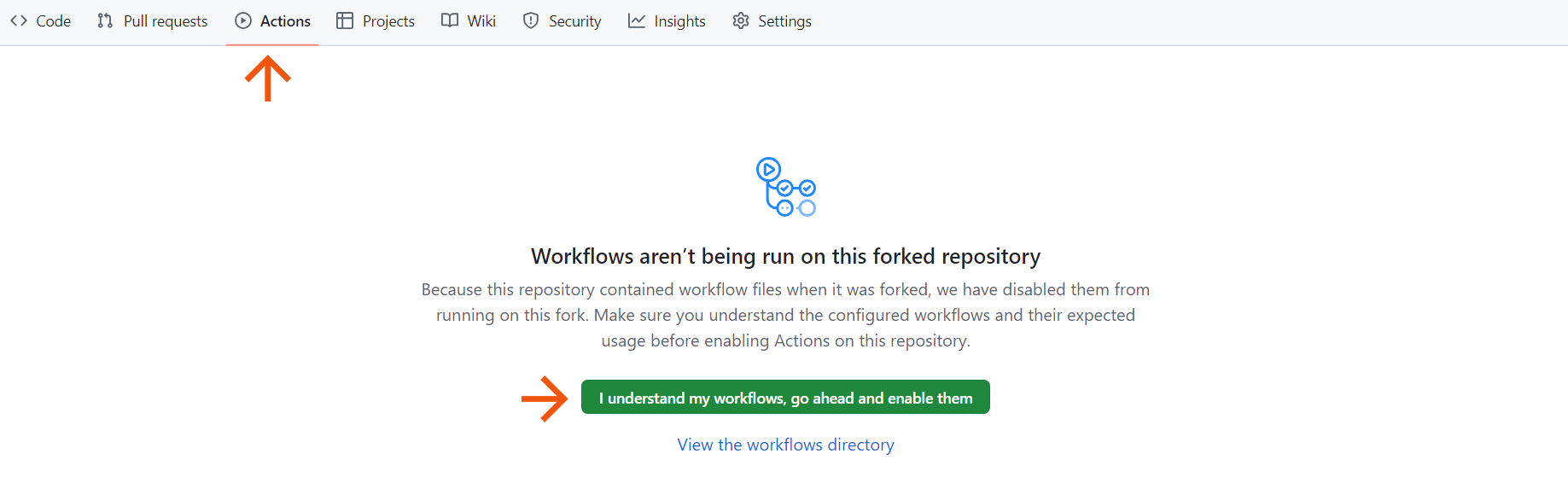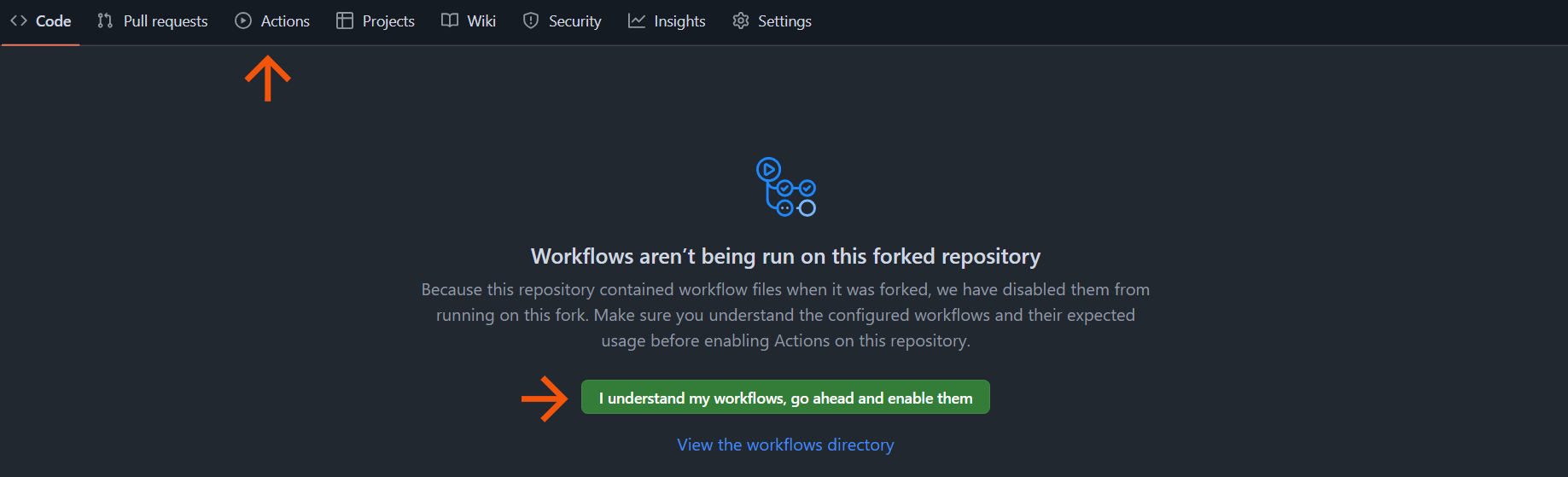 Fork the Catalyst Guides repository, then enable GitHub Workflows.