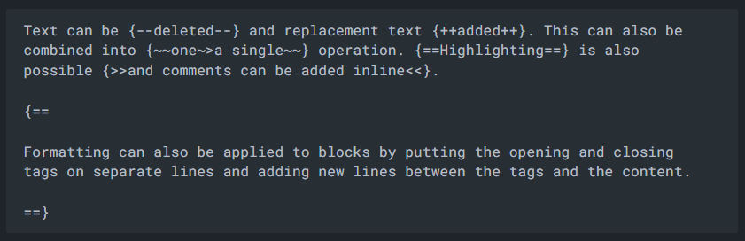 Formatting can also be applied to blocks by putting the opening and closing tags on separate lines and adding new lines between the tags and the content.