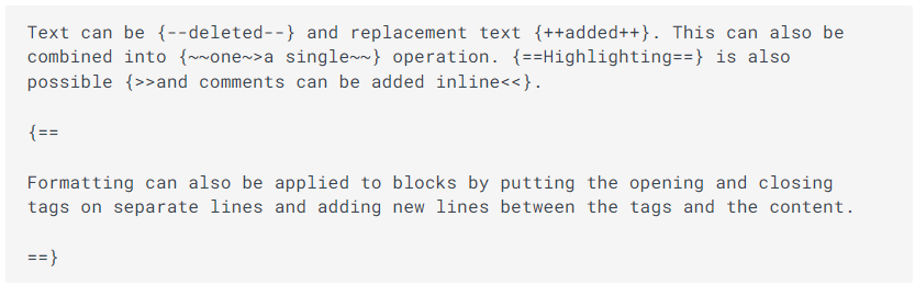 Text can be deleted and replacement text added. This can also be combined into onea single operation. Highlighting is also possible and comments can be added inline.